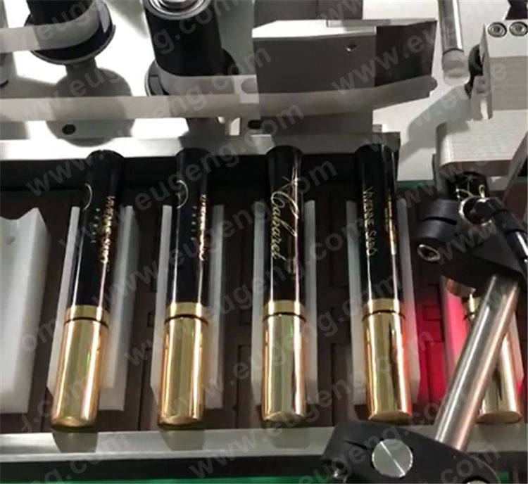Model EGBL-600 horizontal bottom labeling machine is a semi-automatic horizontal labeling machine design for the production of slim round bottles,tube products,such as lip balm bottles,lip gloss bottles,lipstick bottles,mascara,eyeliner pen and so on.